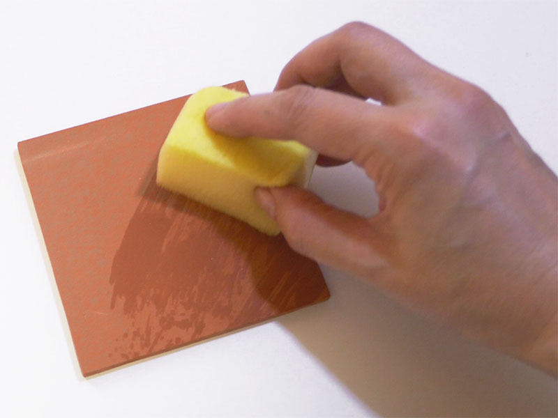 1 タイルやビスクの表面を、水で濡らしたスポンジをよく絞って拭きます。