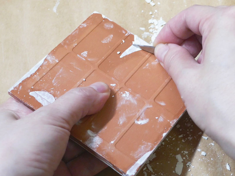 4-1 スティルツ(とち)を使用する場合をのぞき、タイルの裏側、ビスクの高台は釉薬を取ります。