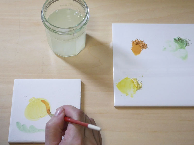 6 顔料を水に溶いて絵付け。